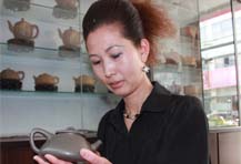 【容量】280cc 【作者】柯俊芬 - 工藝美術(shù)師 筋紋美器,貴妃紅朱泥制,此壺壺身修長(zhǎng),筋紋相間,三彎流,柔潤(rùn)優(yōu)美,環(huán)把隨勢(shì),與壺嘴相呼應(yīng),氣韻舒暢。壺身刻繪寒梅,梅香四溢 菱花 · 壺型簡(jiǎn)介![]() 紫砂“筋紋器”的形成,是吸收諸多姐妹藝術(shù)成果的基礎(chǔ)上發(fā)展壯大的。“筋紋器茶具”與蘇式家具相類(lèi),制作講究,圓透而渾厚,均勻又飽滿的藝術(shù)效果,角線、面的要求達(dá)到均、挺、圓、正。面上平而有力,線型“硬”、“糯”兼之,角線鋒不顯露,腳線轉(zhuǎn)折分明。風(fēng)格上協(xié)調(diào)統(tǒng)一。我們認(rèn)清紫砂工藝的特性,加強(qiáng)對(duì)紫砂傳統(tǒng)工藝的學(xué)習(xí),珍視紫砂壺藝獨(dú)特的材質(zhì)美、獨(dú)特的工藝制作美、獨(dú)特的使用功能美,使之提高發(fā)展,創(chuàng)造出符合現(xiàn)代生活需要的佳作。 菱花壺通體作菱花式,蓋身渾然一體,分六瓣組成,上下對(duì)稱。棱線凹凸分明,有棱有廓,權(quán)衡比例,秀麗可愛(ài)。壺式由線云壺變化而來(lái),橋鈕與菱花瓣相融,嘴作棱花式,胥出自然,把彎曲恰體,端握方便,壺腹中央束一方腰帶,整個(gè)菱線自壺頂至壺底相交成一點(diǎn),分毫不差。壺蓋六面可置換,十分嚴(yán)密,技藝精湛。 猜您喜歡