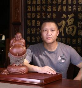 【作者】荀少華 - 助理工藝美術師 長30厘米,寬18厘米,高15.5厘米,此款彌勒由青年實力派華少手工制作而成。選用優質原礦紫泥、老荷葉綠泥兩種泥料制作,彌勒面部表情刻畫生動,顯現出吉祥米勒送福的神情,表現無遺!手腳制作更是細膩,形象逼真。此款彌勒笑佛迎人,無論擺在什么地方,都會引人注目,給你帶來快樂和好運!